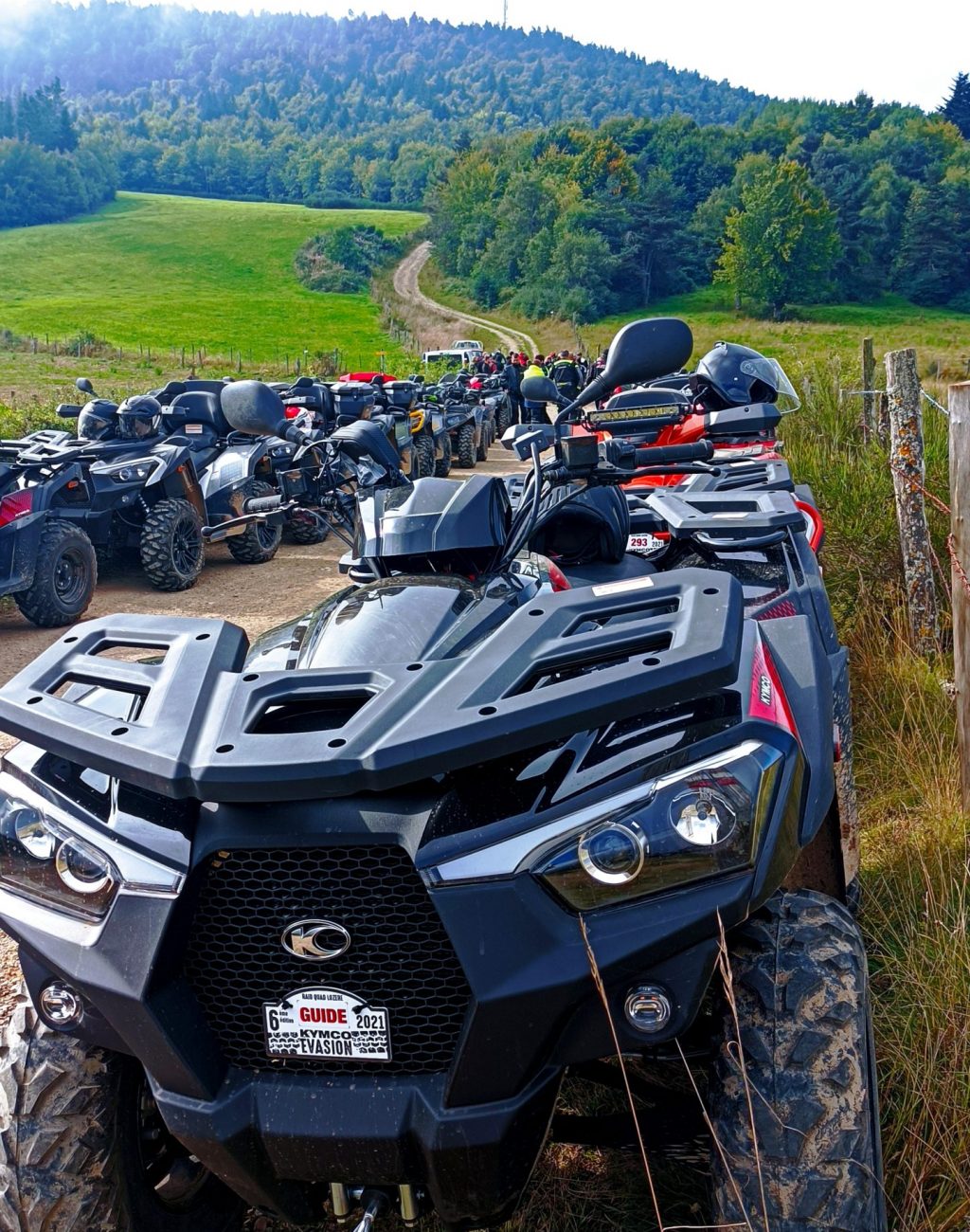 Pour cette édition 2021, Kymco a décidé de nous inviter dans la région de l’Occitanie, dans le département de la Lozère et a choisi comme point de départ la commune de Mende. Le Kymco Evasion a accueilli des quadeurs venus des quatre coins de Franc et même nos amis Belges étaient de la partie. L’événement a donc rassemblé plus de 190 quads et pas moins de 250 participants, tous réunis pour prendre du bon temps à bord de leur quads. Les organisateurs avaient prévu ce grand nombre de participants et a donc fait plusieurs tracés de parcours pour éviter la surcharge et les bouchons. Les participants étaient par groupes de 10 avec un guide VTM pour être dans les meilleures conditions et profiter pleinement de leur quad et de la randonnée.
