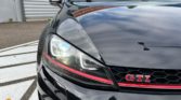 Logo ?GTI' écrit en blanc sur les étriers de frein rouge à l'avant